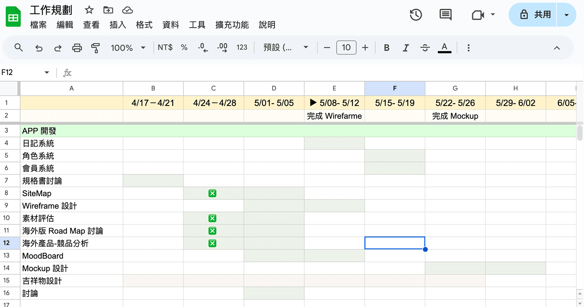 複雜的專案會列出時程表,以評估各事項進度